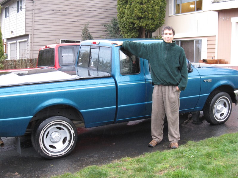 May 2009 update: My original plan was to get 1989-1995 Toyota, because of their legendary durability. But several readers suggested a Ford Ranger, and in March when I started looking at vehicles, Rangers were roughly five times as plentiful as Toyotas, and half the price for the same year and condition. I ended up getting a 1997 extended cab with 120,000 miles for $2600, from a nice private seller. Here's a photo of