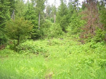 Also, someone on the forums had the idea to accelerate the decay of the wood piles by covering them with leaves. Of course, I don't have any real leaves up there, because all the trees are conifers. But I do have some some dead ferns and dead grass, and I can haul up bags of leaves every fall from Spokane and throw them on the piles, and also throw water on throughout the summer. So, in addition to the three burn piles, I've started two wood composting piles, and if I get enough leaves this fall I'll do a third. At this rate, I should be able to clear away the worst of the slash in four or five years.