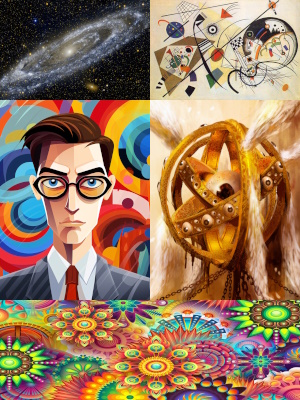 To pad my desktop view, I'm putting image credits here. The humans and green alien are from freepik.com; I can't find the original source for consciousness; the galaxy is M31 in Andromeda from Wikimedia commons; alien consciousness is the painting Transverse Line by Kandinsky; and the alien below is from Ophanim by Danilo Wolf.